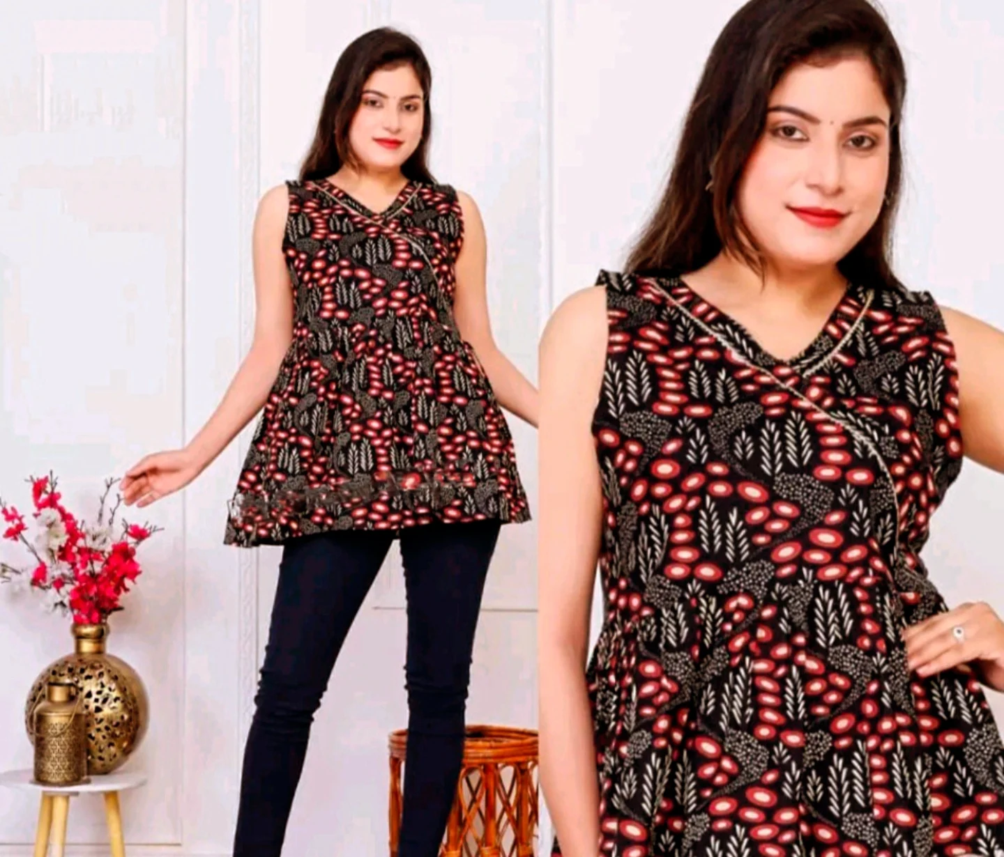 Presenting our latest CHIC and trendy V-Neck Tunics in Ajrakh prints. These cute looking Tunics comes in 3 unique Ajrakh block motives. These are made id soft cotton material and comes with strings amd sleeves. These tunics are a very comfortable and casual wear, suitable for all ages and sizes.