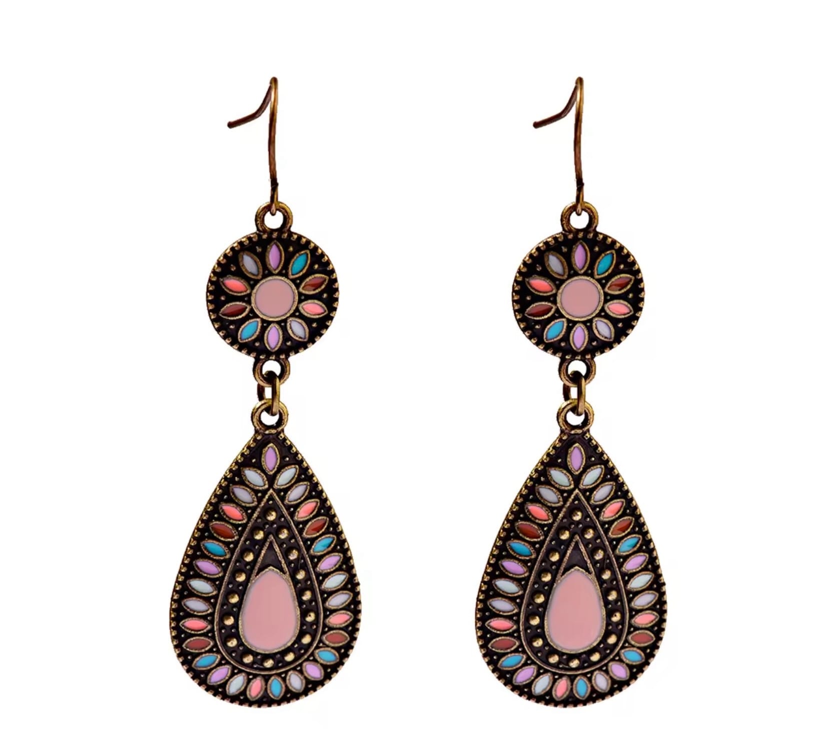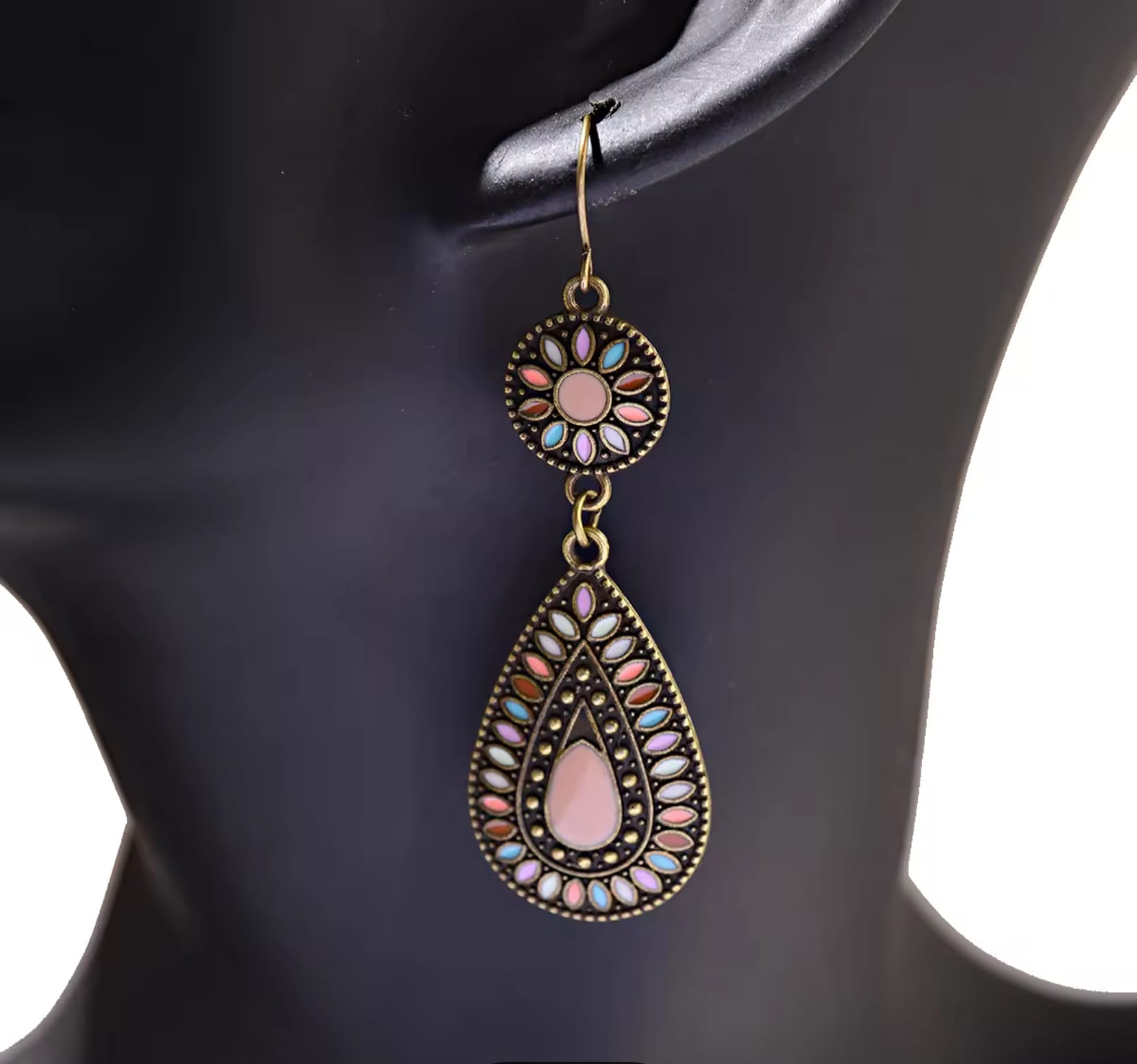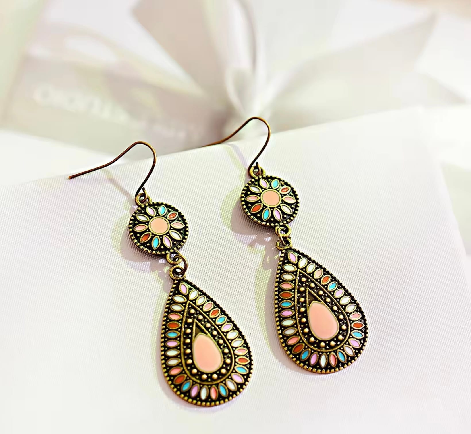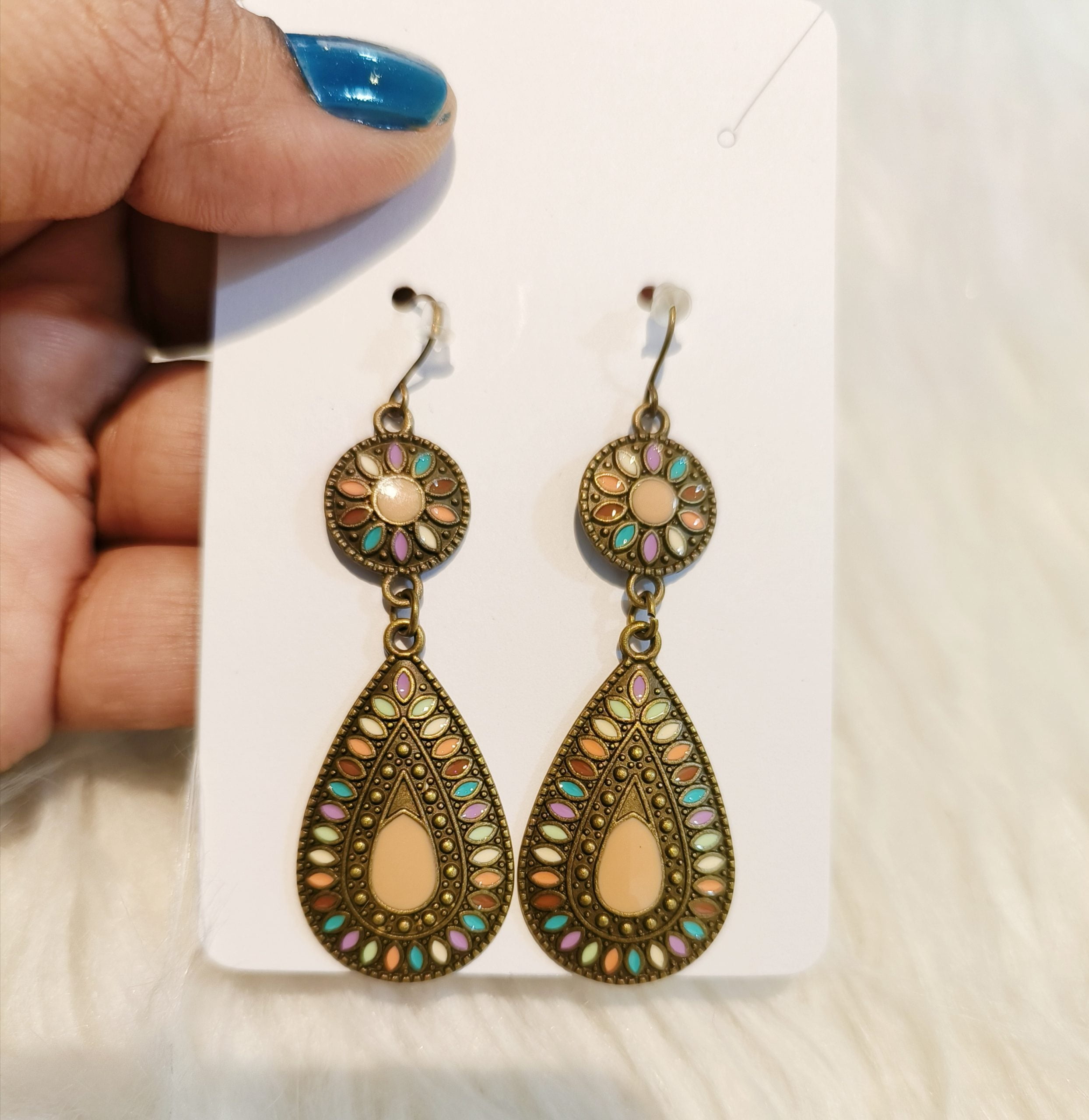 This is a festive collection Drop Earrings collection. These earrings comes with attractive coloured studs and water drop bronze metal designs. Overall size 6.5cm (height) x 2cm (length). It comes in 5 colours to choose for your attire. Suitable for casual occasions for the festive season.
