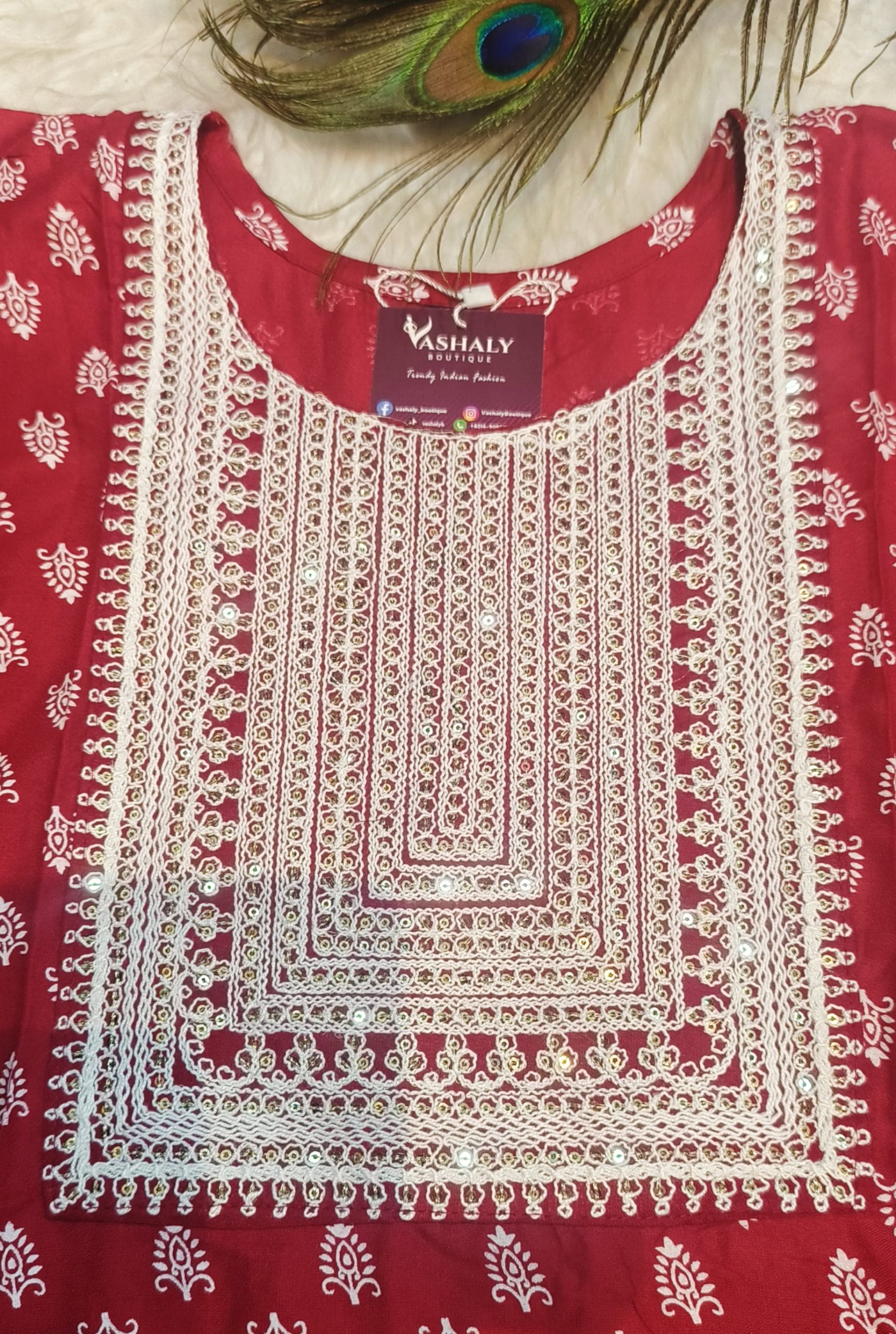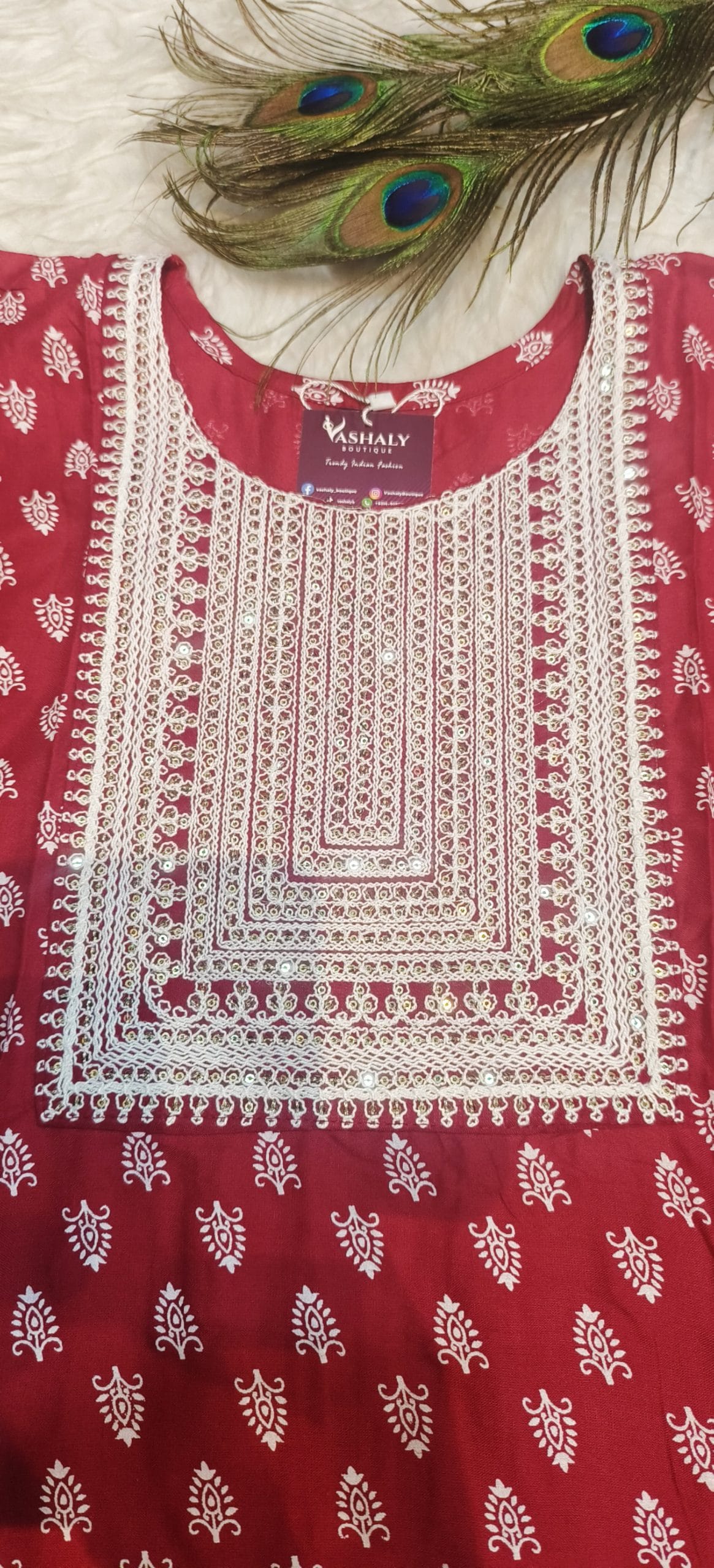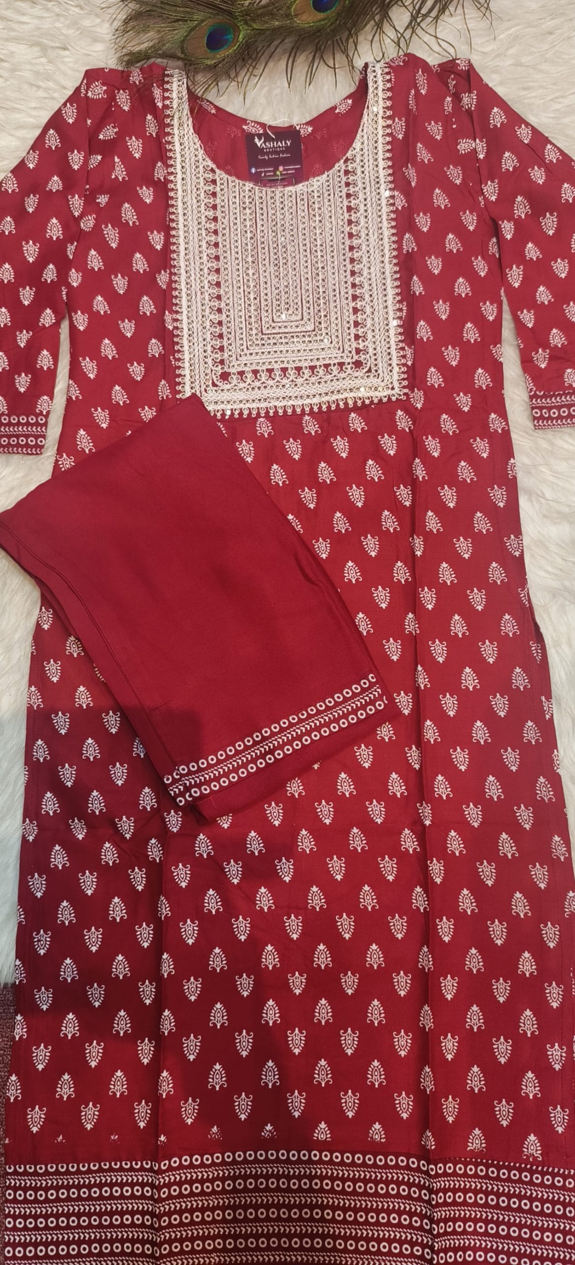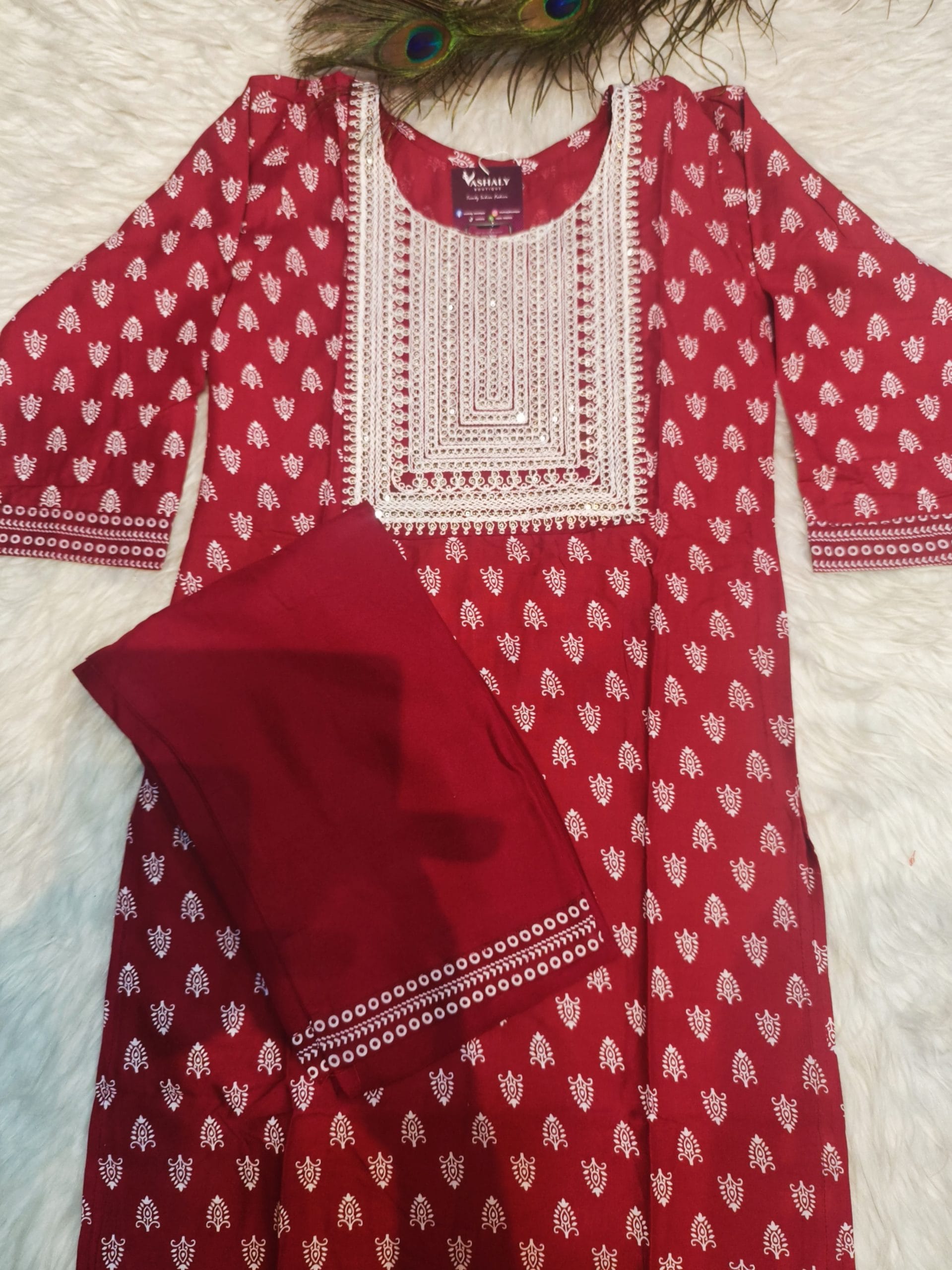 Embroidered Cotton Kurtis-Pants (Maroon)