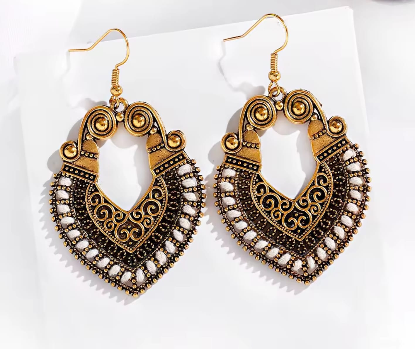 Be the first to review “Heart-Shaped Chandbali Dangles with Bells (White)”