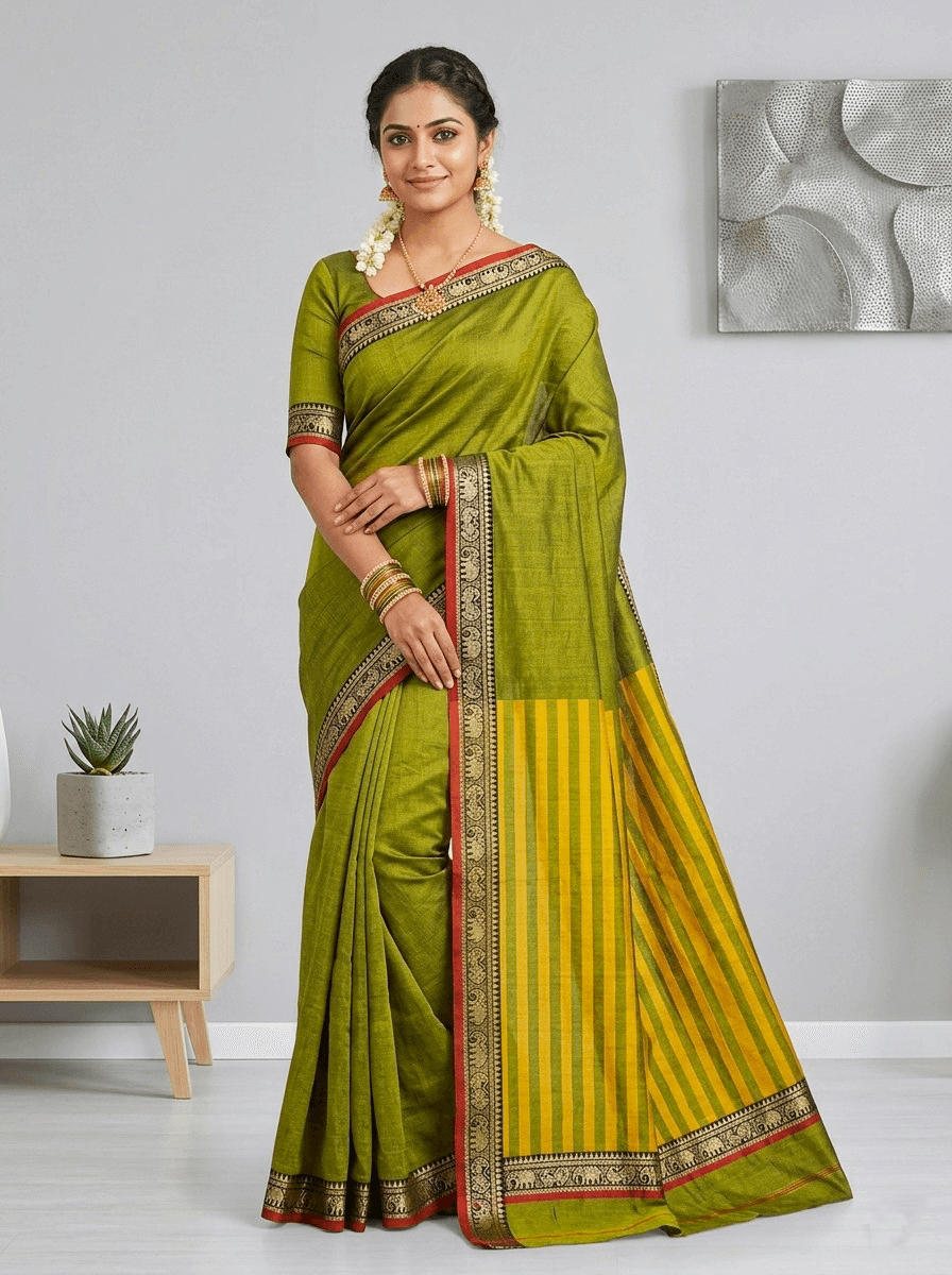 Gajra – Narayanpet Cotton Sarees (Olive)
