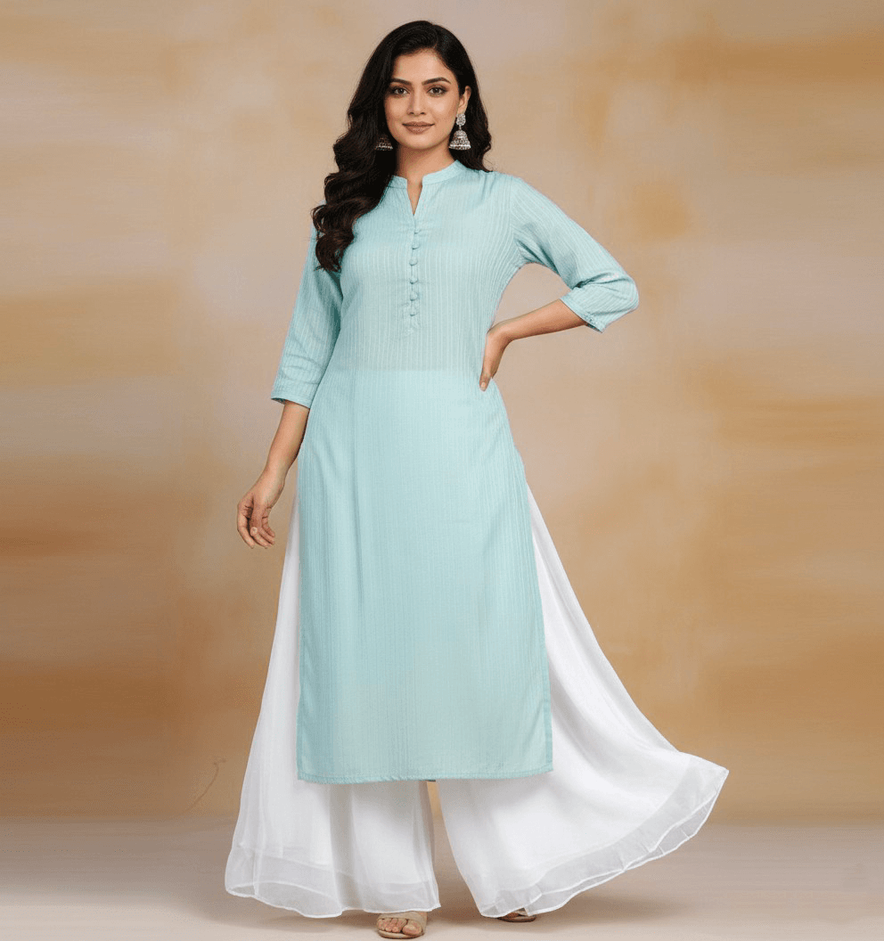 A specially curated Kurtis-Palazzo-Jhumka combo for the minimalist, modern woman who loves a hint of sophistication. This elegant looking pastel shaded combo sets are now available in our store and website.