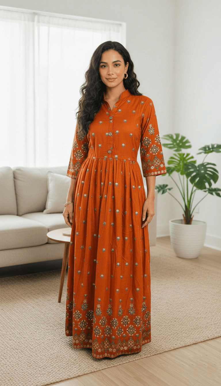 Be the first to review “Long Kurti Dress (Yam Orange) Size L40”